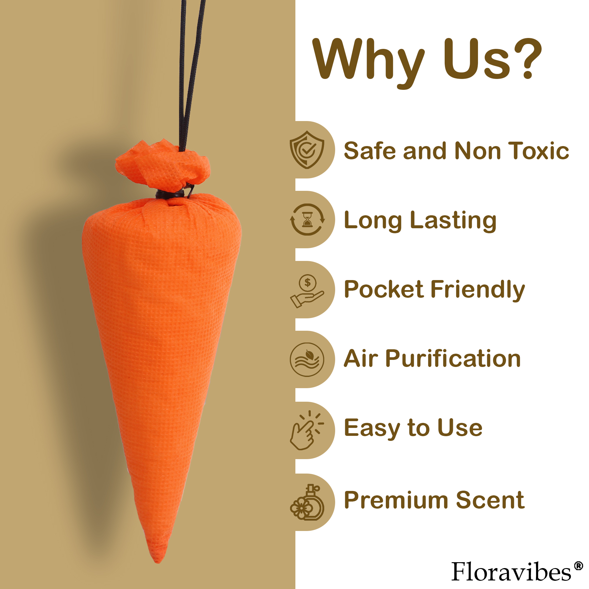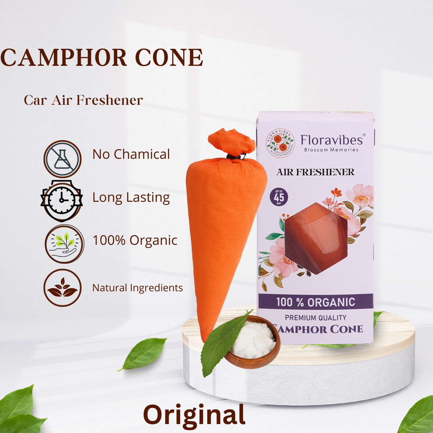 Experience nature’s freshness with Floravibes Camphor Cone Air Freshener—a premium air-purifying solution designed for your car, home, office, or wardrobe. This eco-conscious cone is made using natural camphor and organic essential oils, offering a clean, long-lasting aroma that’s both soothing and invigorating. Its antibacterial properties help eliminate airborne bacteria while actively repelling mosquitoes and insects, making your environment not just fragrant but also healthier. The compact design makes it perfect for hanging in vehicles, closets, bathrooms, or anywhere you seek a refreshing scent. Unlike traditional air fresheners, this product is chemical-free and non-toxic, making it safe for kids, pets, and sensitive users. Whether you’re fighting musty odors or simply enhancing your personal space, this camphor cone ensures a toxin-free, aromatic experience. Crafted with sustainability in mind, Floravibes camphor cones are biodegradable and housed in breathable cloth pouches for consistent scent diffusion. Just unwrap, hang, and breathe in freshness that lasts up to 45 days. Ideal for gifting, travel, or daily use.